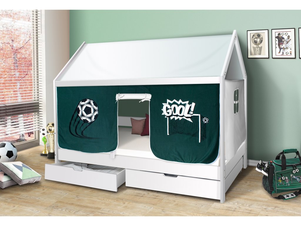 Dětská domečková postel Mike bílá - FOTBAL 200x90 cm