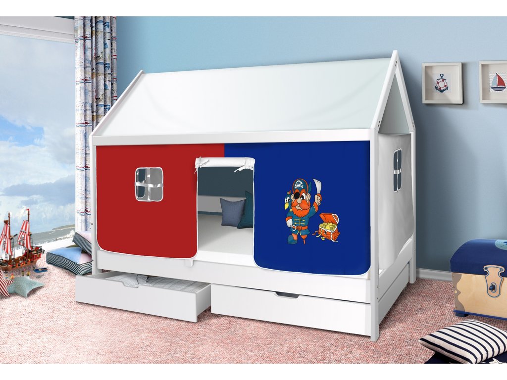 Dětská domečková postel Mike bílá - MODRÝ PIRÁT 200x90 cm