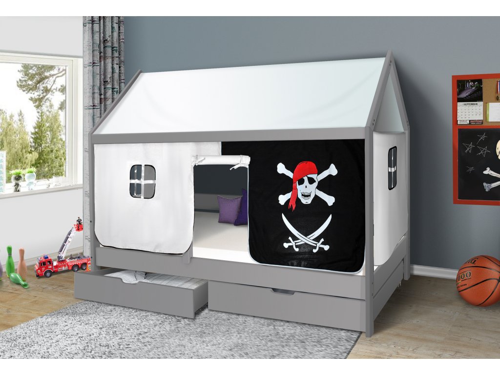Dětská domečková postel Mike šedá - PIRÁT 200x90 cm
