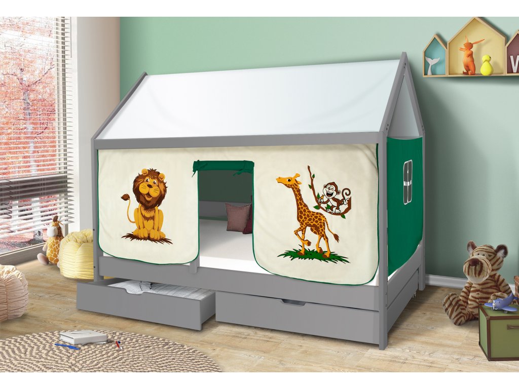 Dětská domečková postel Mike šedá - SAFARI 200x90 cm
