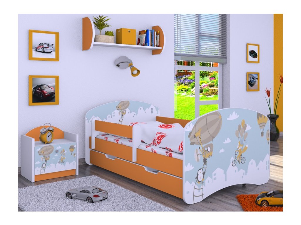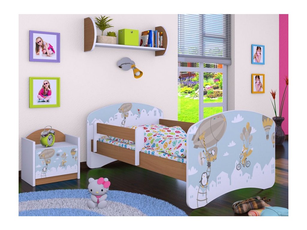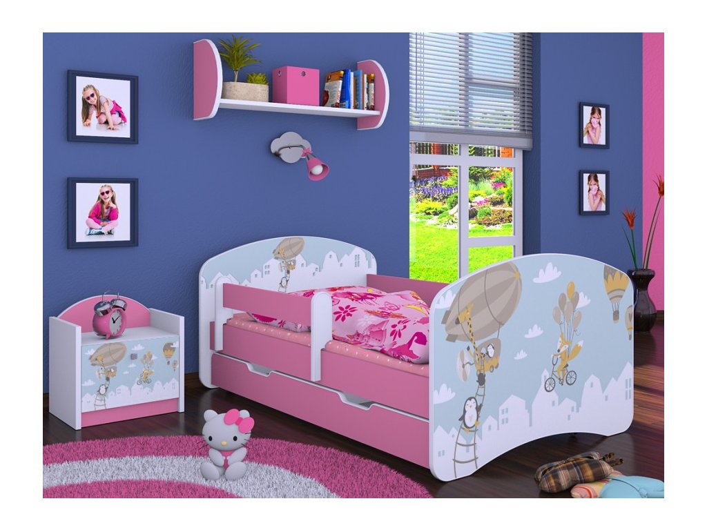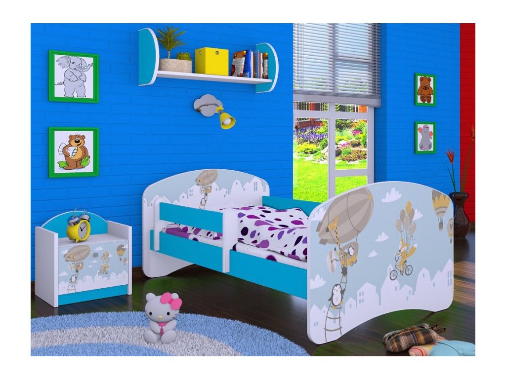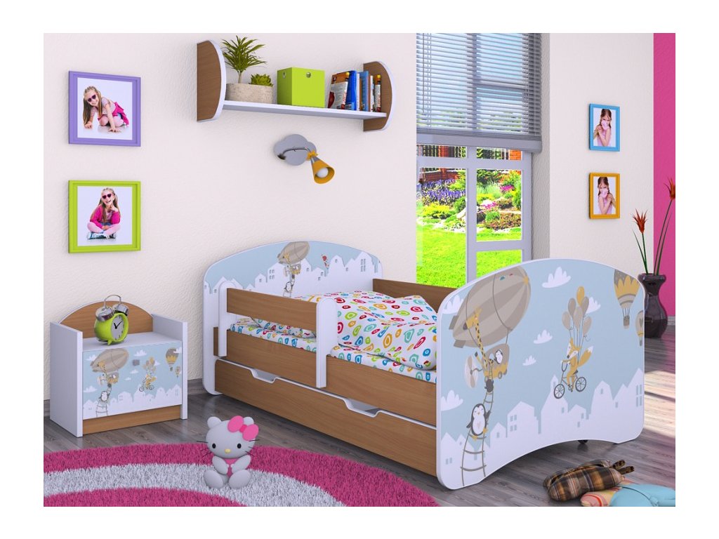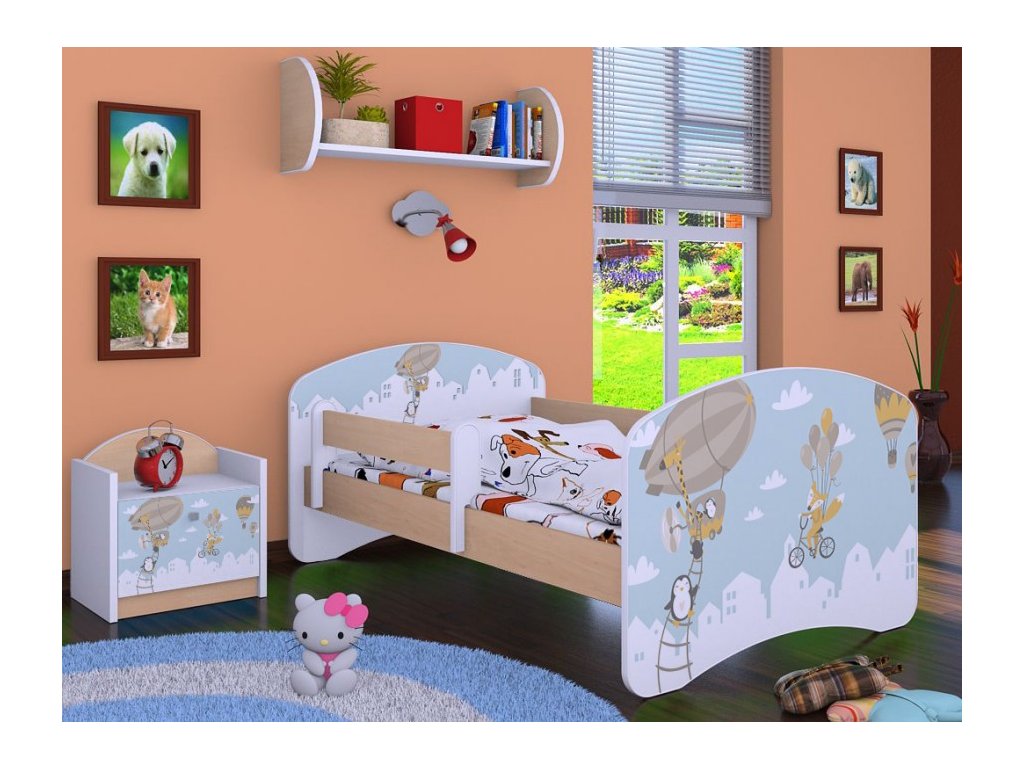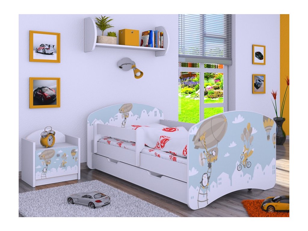 Dětská postel Kevin s obrázkem a zábranou BALÓNY