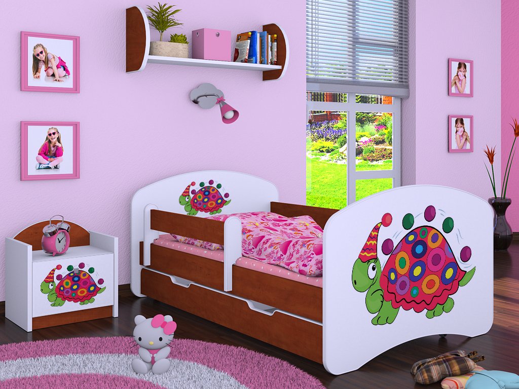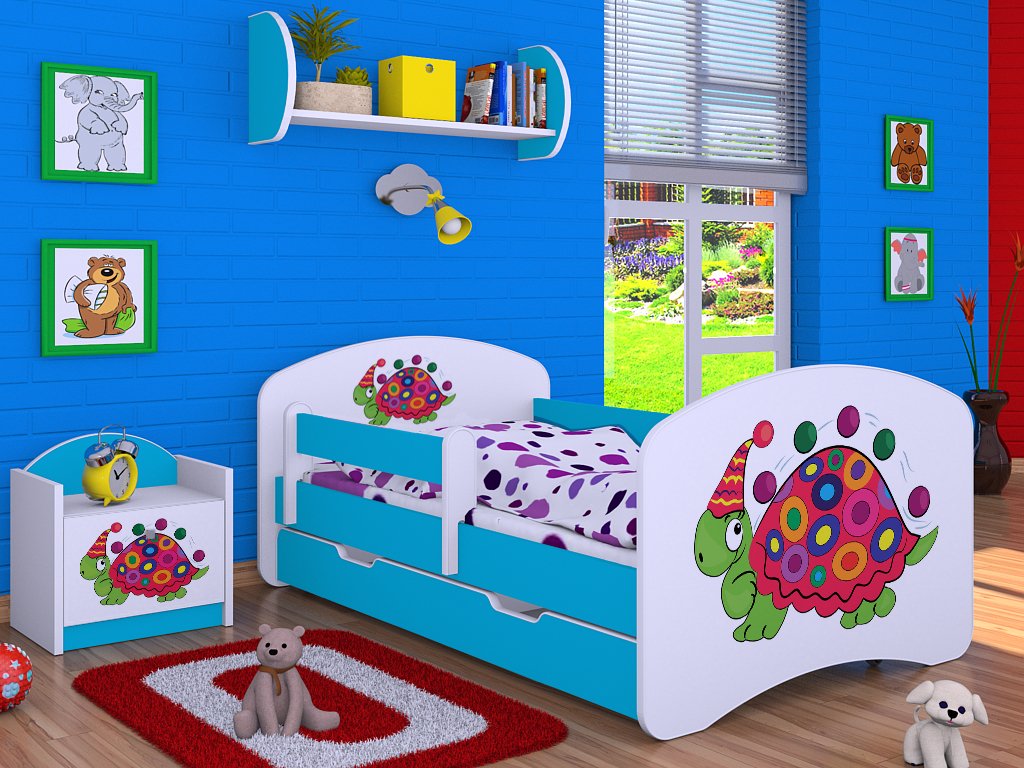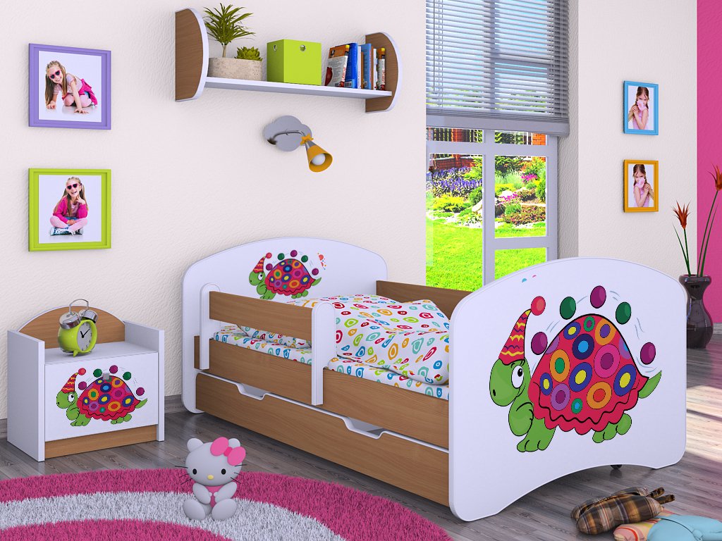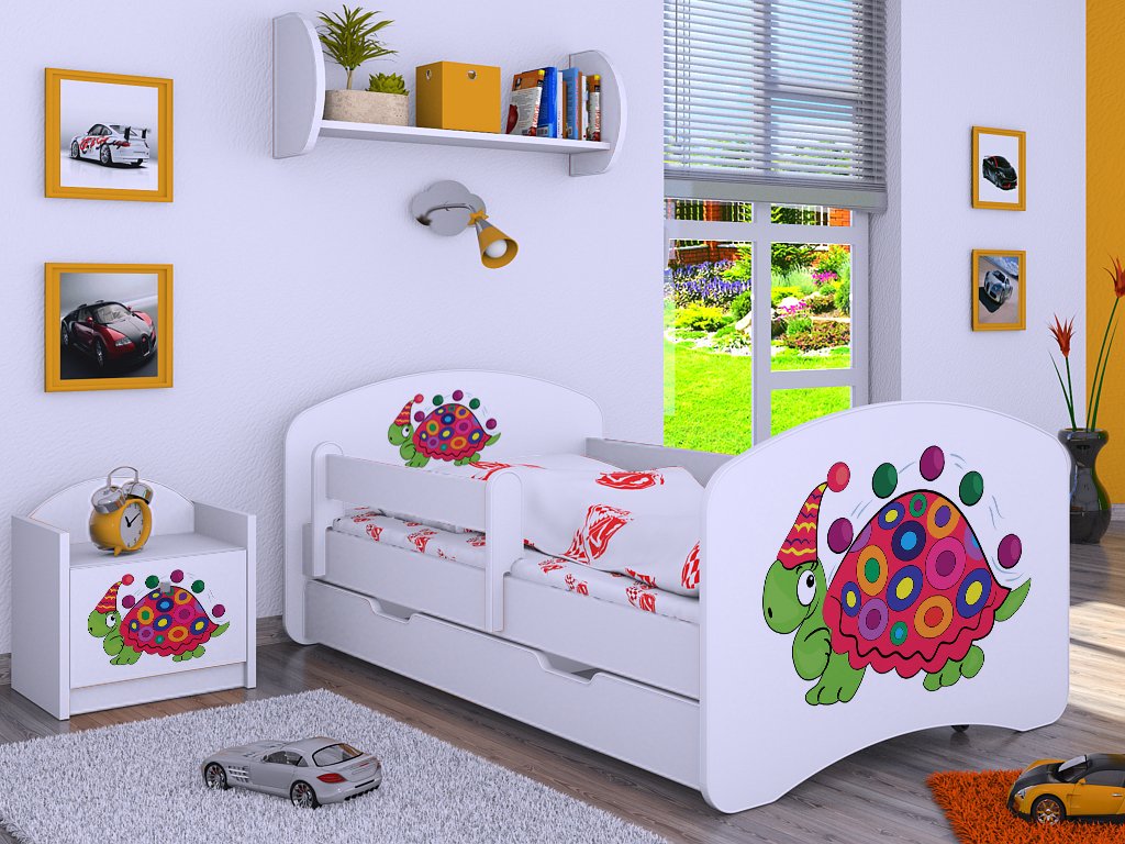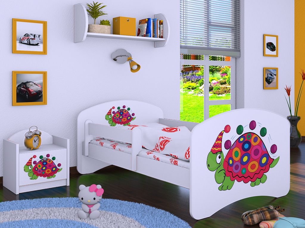 Dětská postel Kevin s obrázkem a zábranou BAREVNÁ ŽELVA