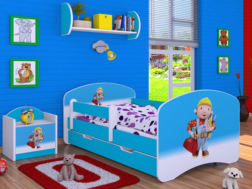 Dětská postel Kevin s obrázkem a zábranou BOŘEK