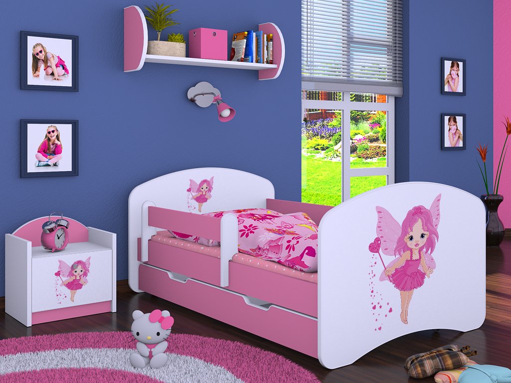 Dětská postel Kevin s obrázkem a zábranou ČARODĚJKA