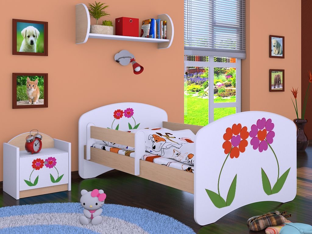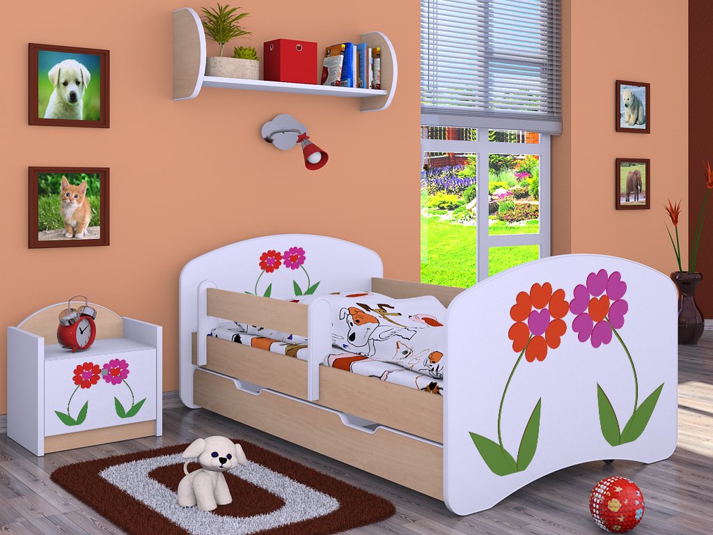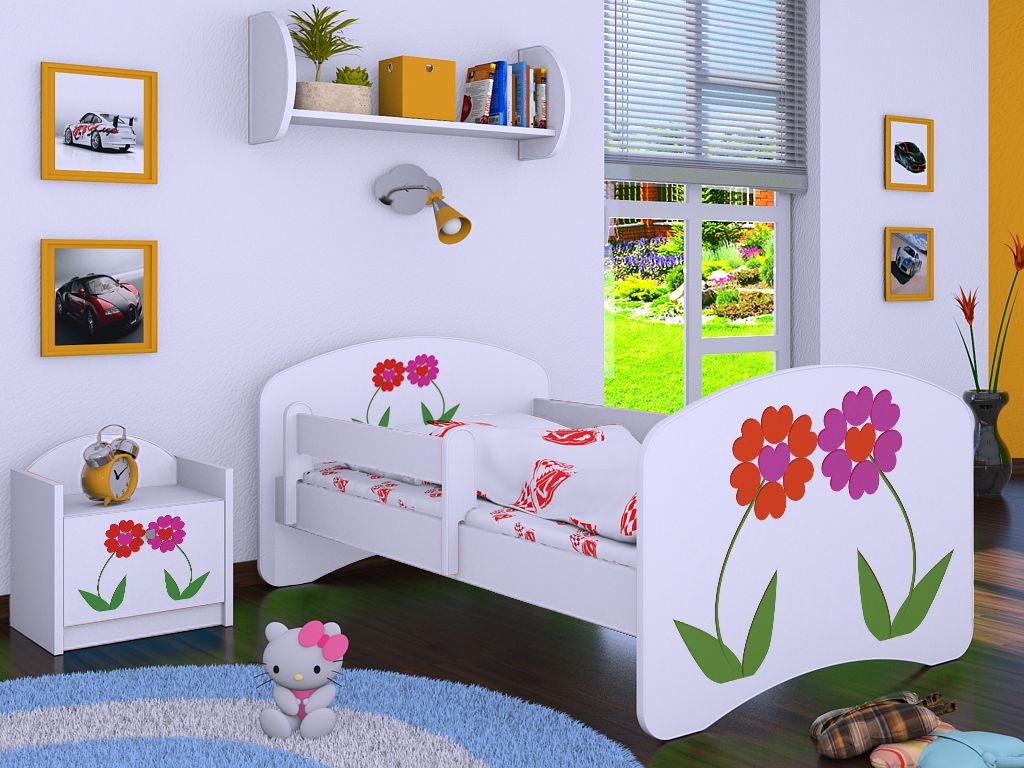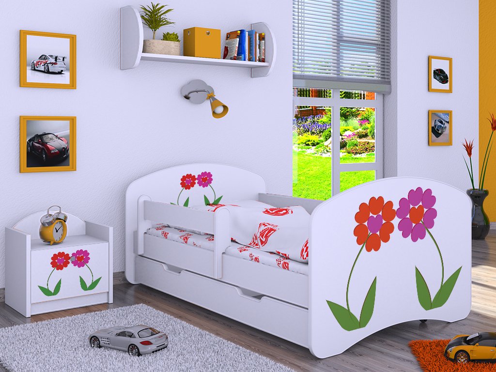 Dětská postel Kevin s obrázkem a zábranou DVA KVĚTY