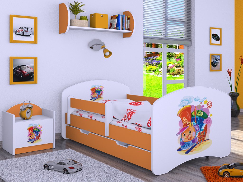 Dětská postel Kevin s obrázkem a zábranou HRAJÍCÍ LOKOMOTIVA