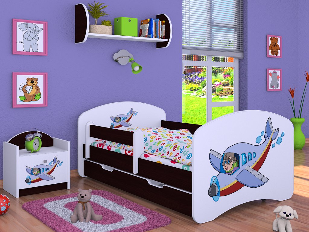 Dětská postel Kevin s obrázkem a zábranou LETADLO
