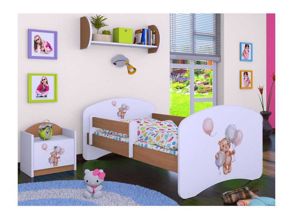Dětská postel Kevin s obrázkem a zábranou MEDVĚD A BALÓNY