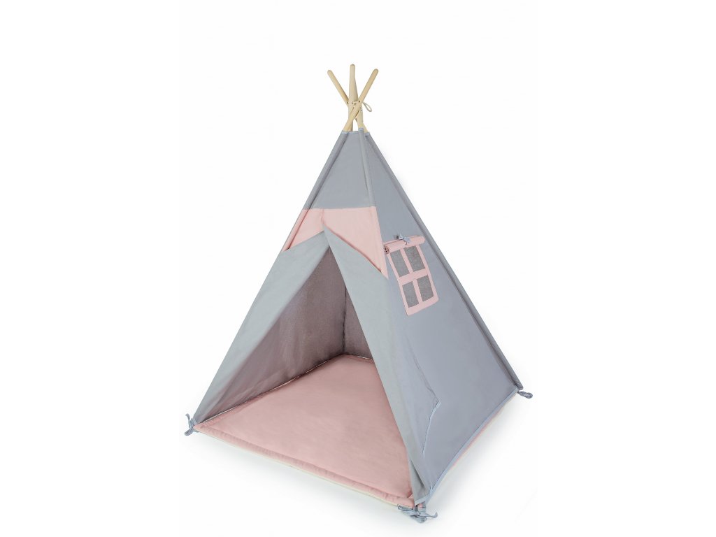 Dětské týpí pro děti s podložkou - ŠEDÝ / RŮŽOVÝ