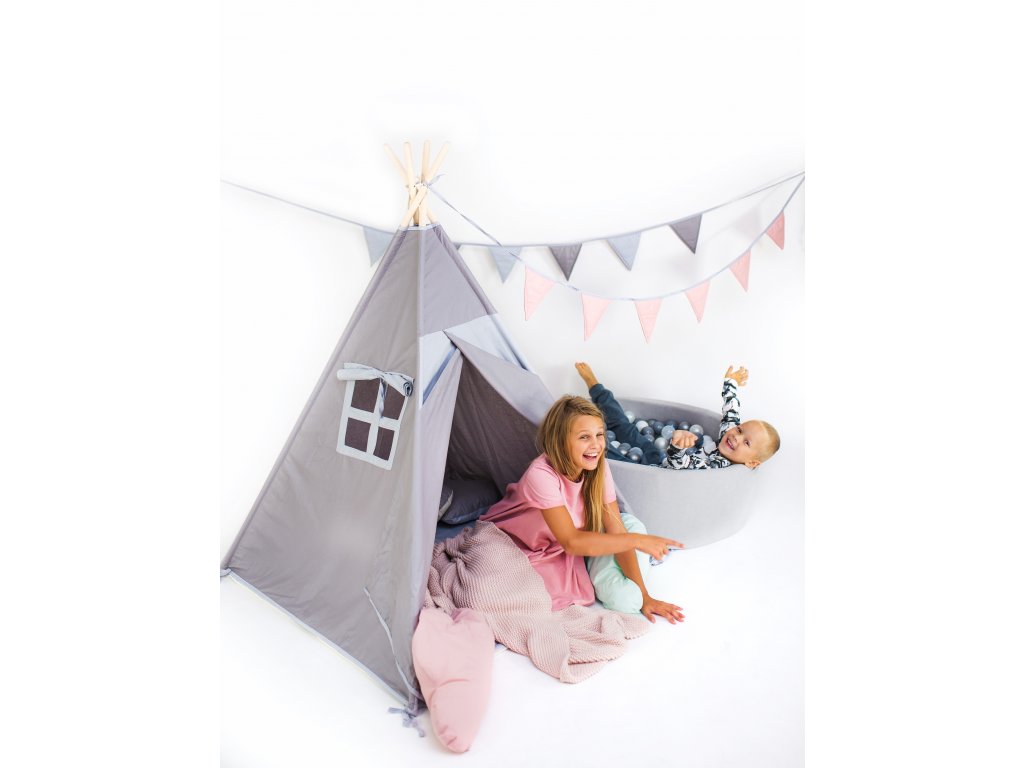 Dětské týpí s vybavením - světle šedý KOMPLETNÍ SADA