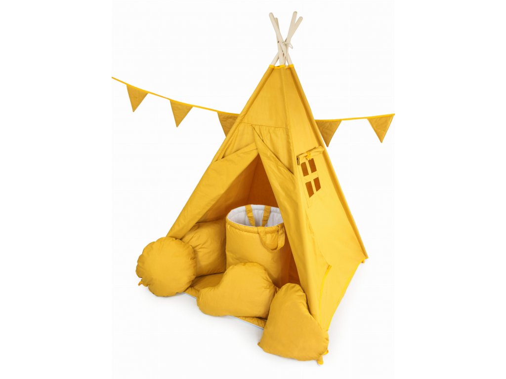 Dětské týpí s vybavením - žlutý KOMPLETNÍ SADA