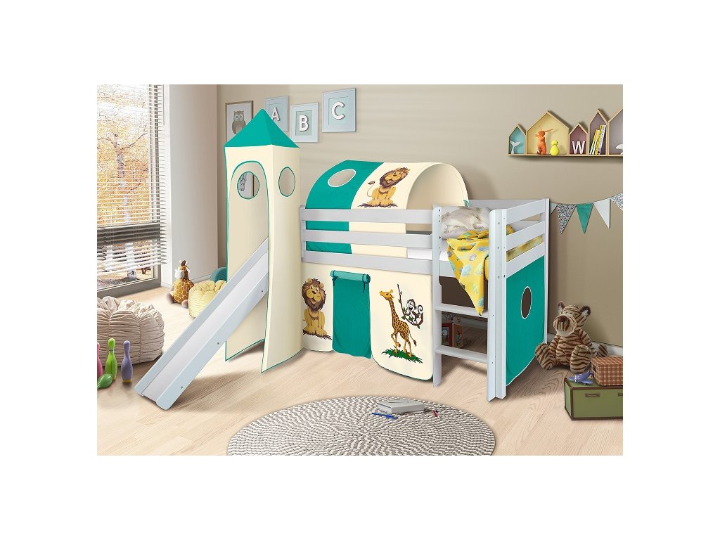 Dětská vyvýšená postel se skluzavkou z masivu borovice - safari - bílá