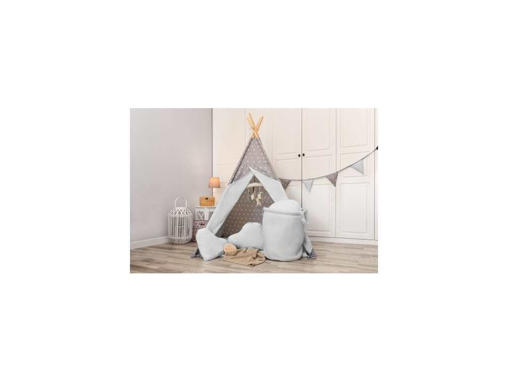 Dětské teepee s příslušenstvím–ŠEDÝ bílé hvězdy | Útulný hrací koutek pro děti