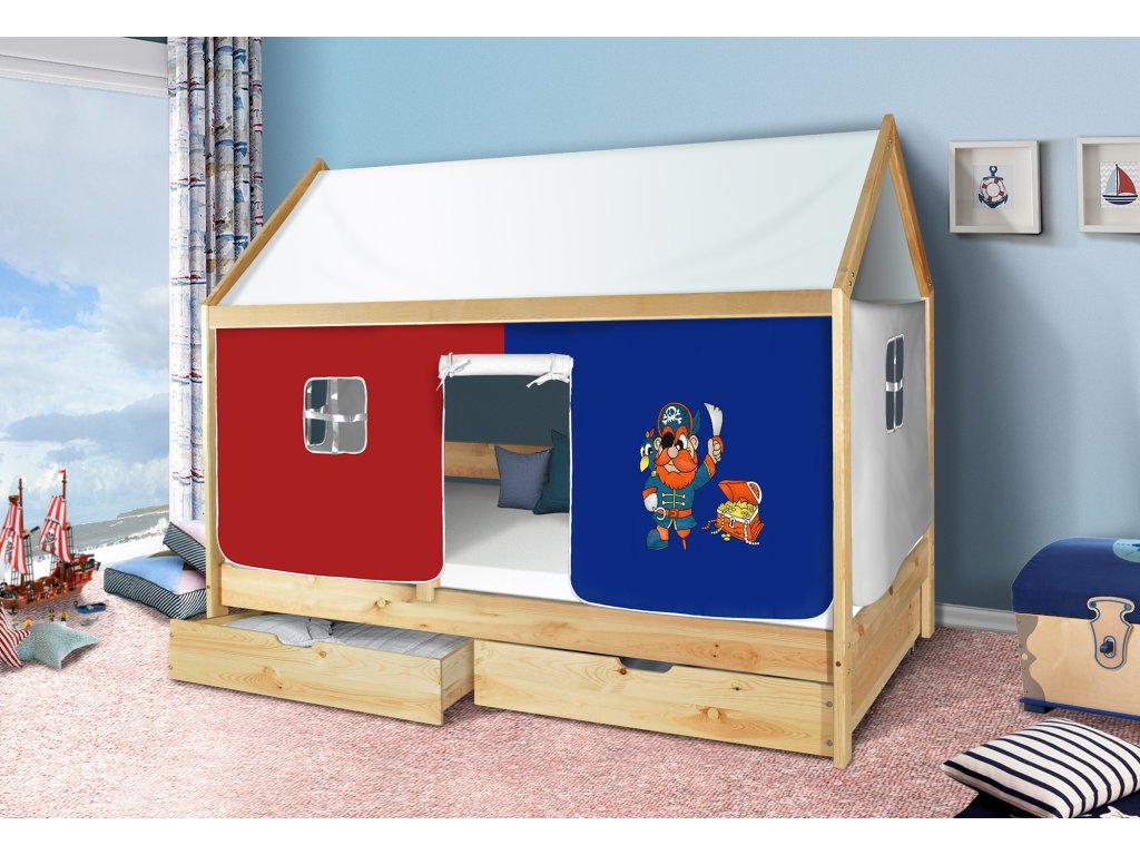 Dětská domečková postel Mike přírodní - PIRÁT MODRÝ 200x90 cm