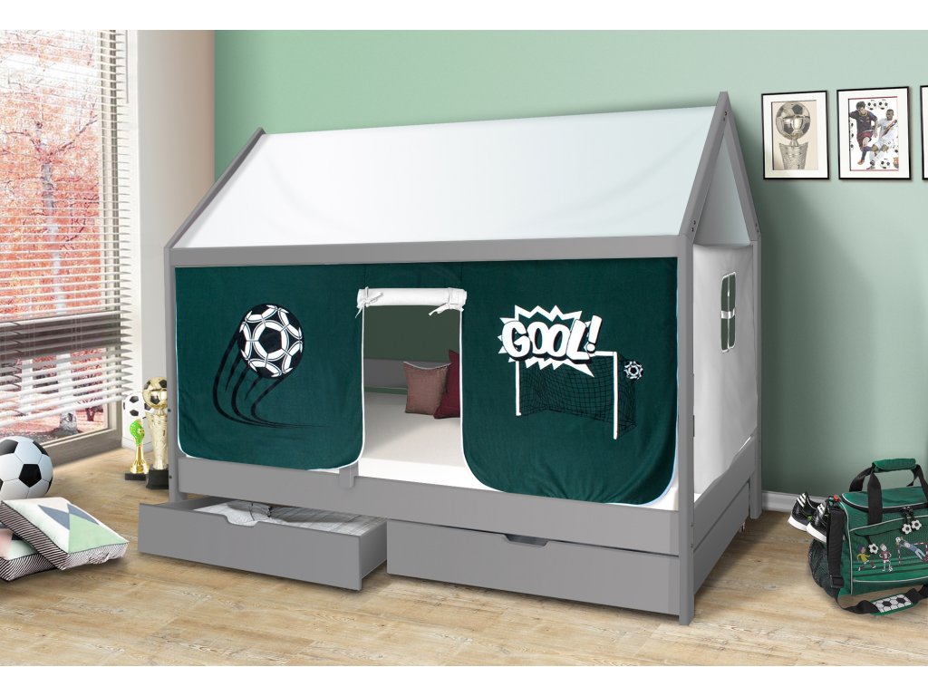Dětská domečková postel Mike šedá - FOTBAL 200x90 cm
