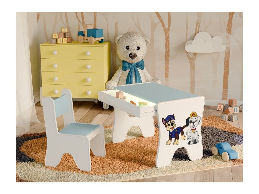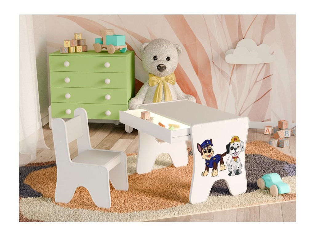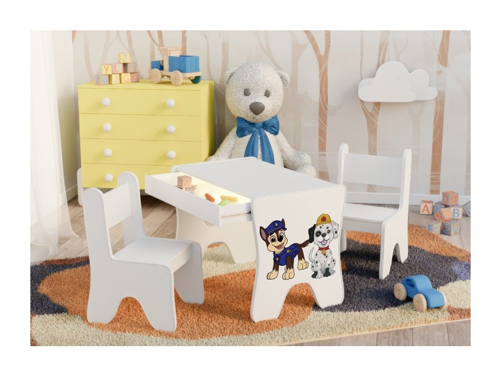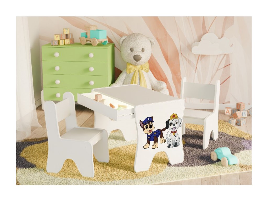 Dětský stůl a židle s šuplíkem - DVA PEJSCI