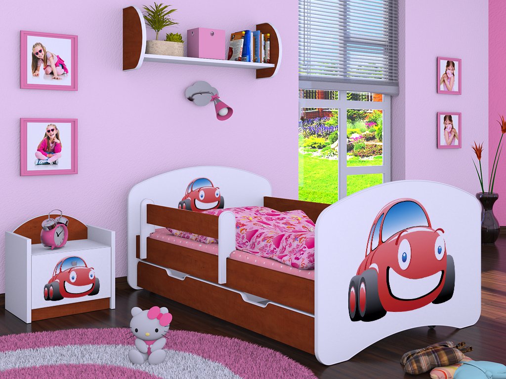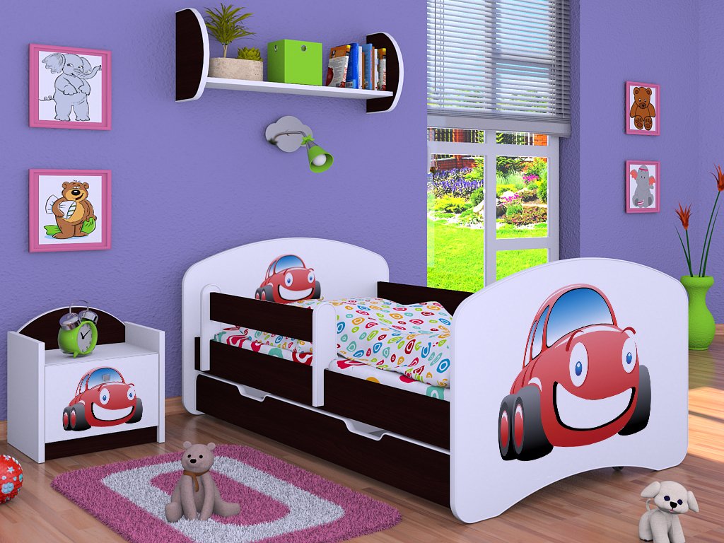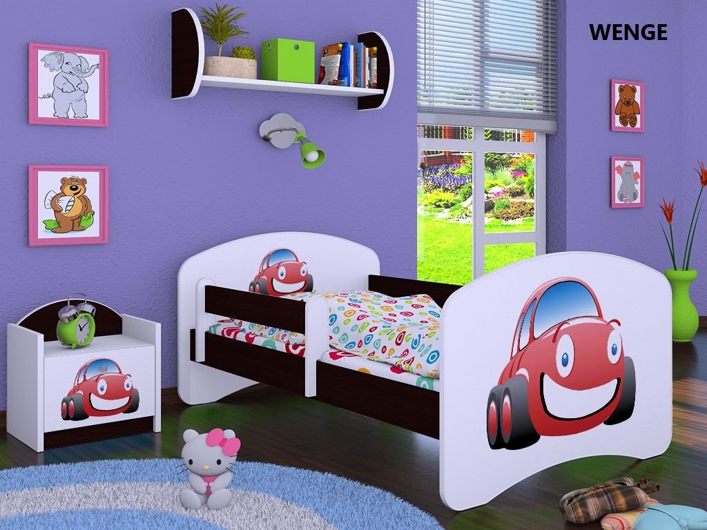 Dětská postel Kevin s obrázkem a zábranou AUTO