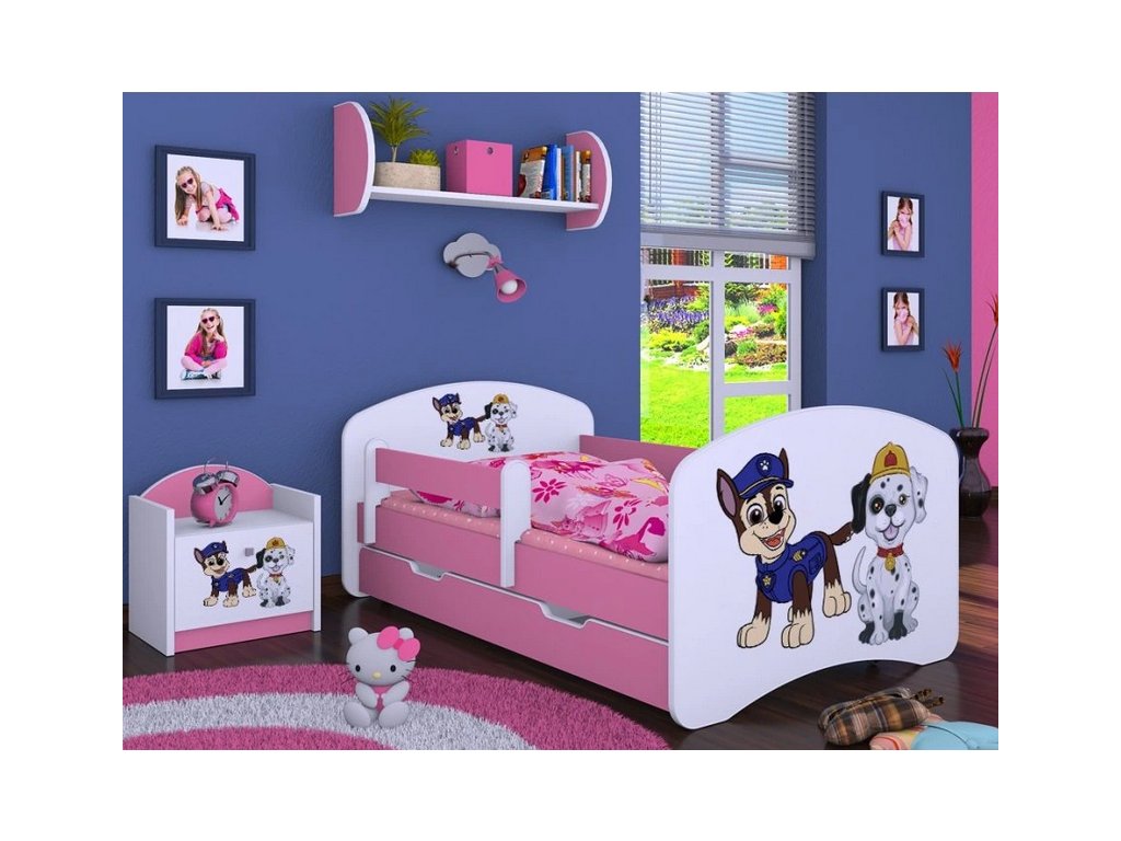 SKLADEM Dětská postel s obrázkem Kevin 140 x 70 cm - DVA PEJSCI růžová