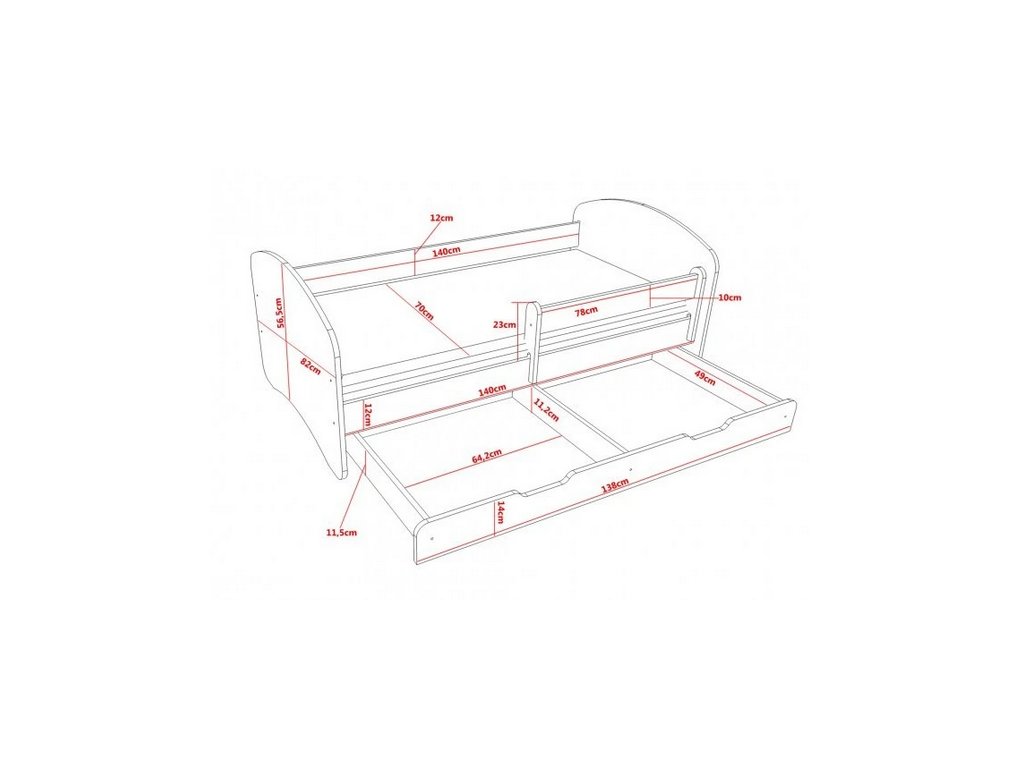 | Příslušenství: | Matrace, Matrace a rošt, Úložný prostor, Zábrana |