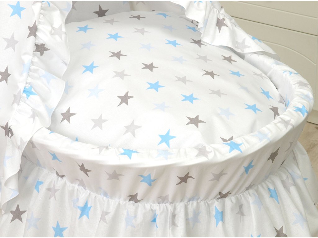 Proutěný košík pro miminko BÍLÝ modro-šedé hvězdy