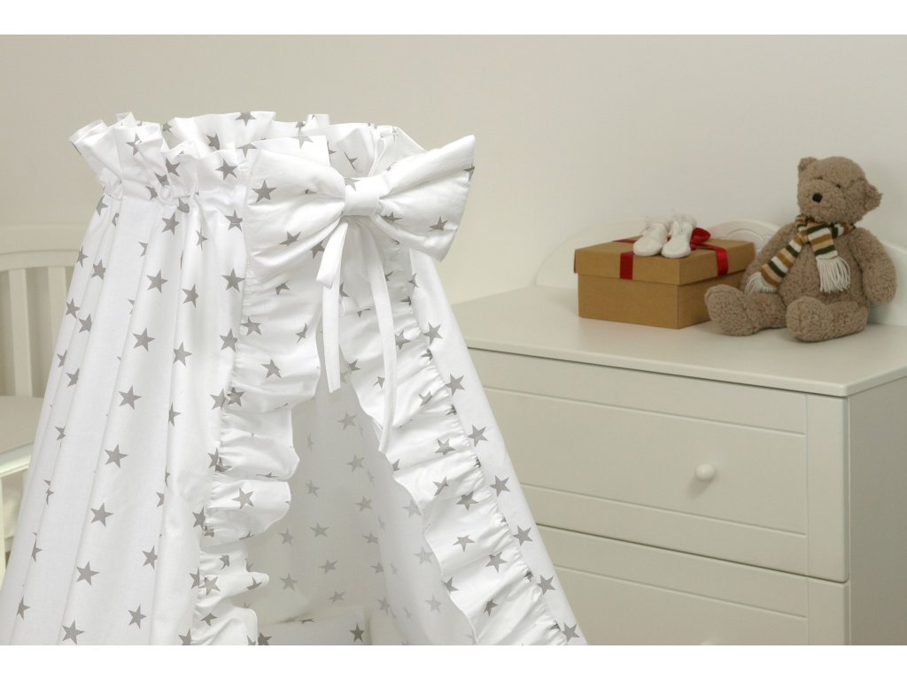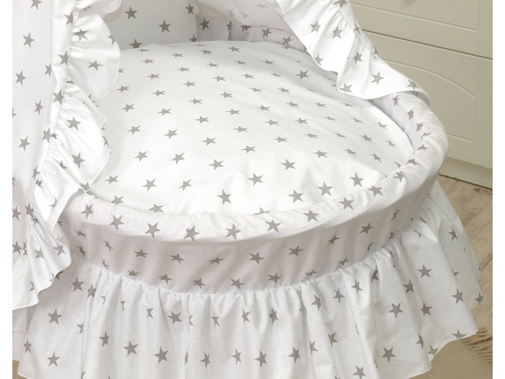 Proutěný košík pro miminko BÍLÝ šedé hvězdy