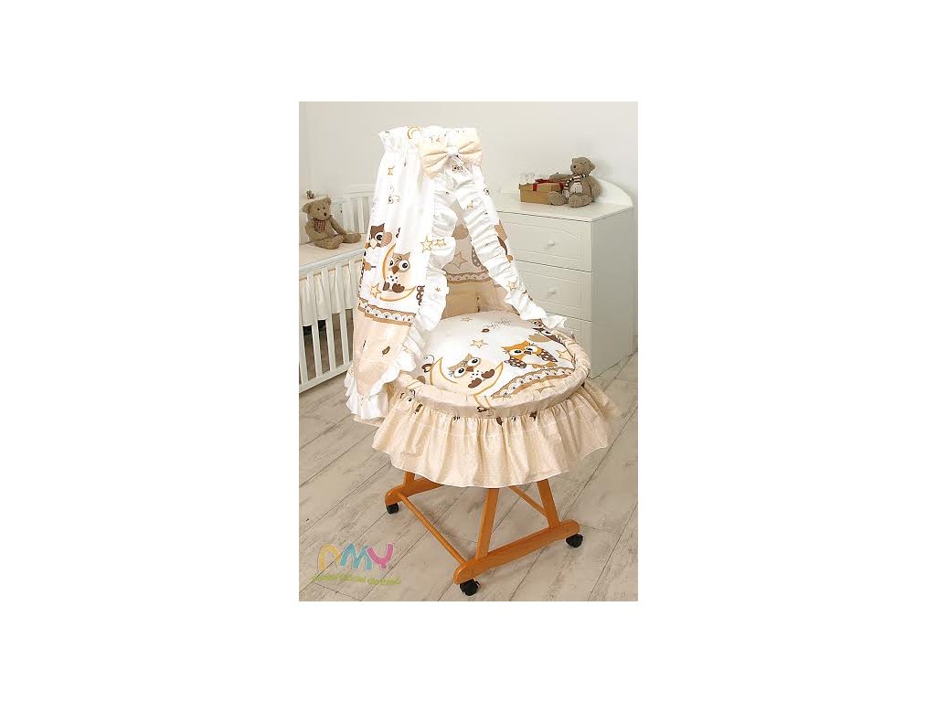 Proutěný košík pro miminko PŘÍRODNÍ Krémové sovy