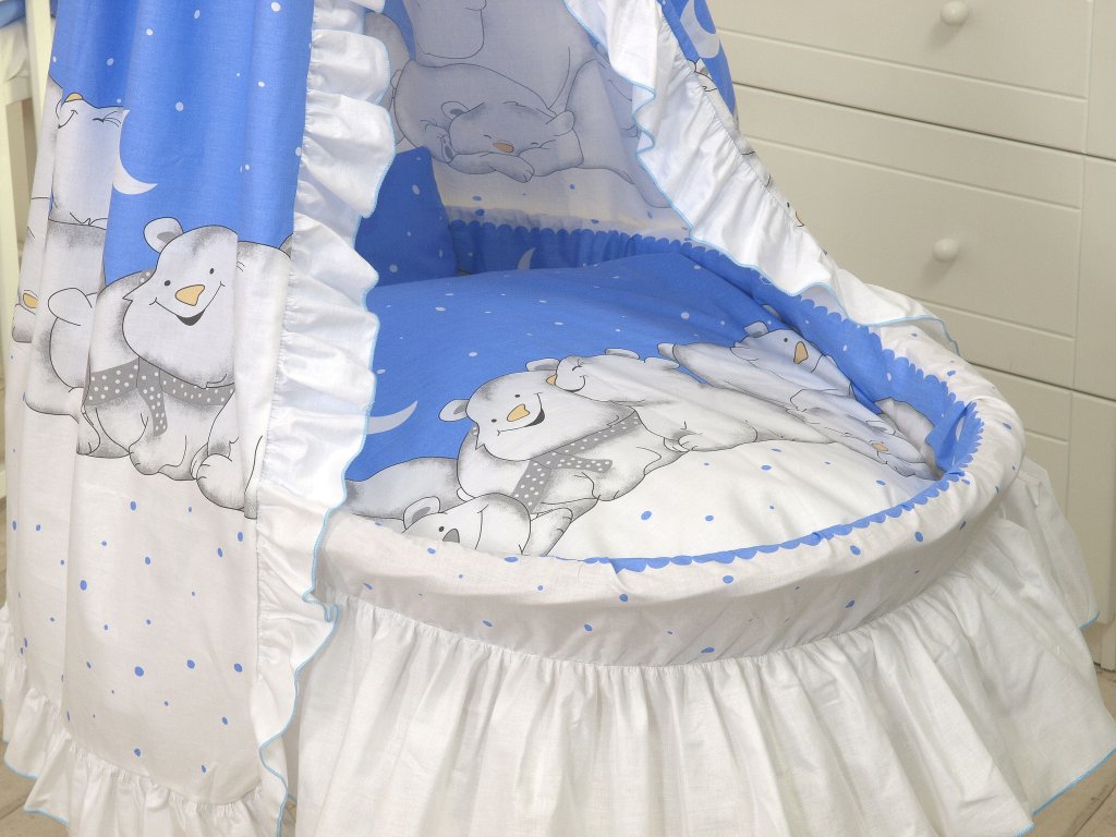Proutěný košík pro miminko PŘÍRODNÍ medvědi modří
