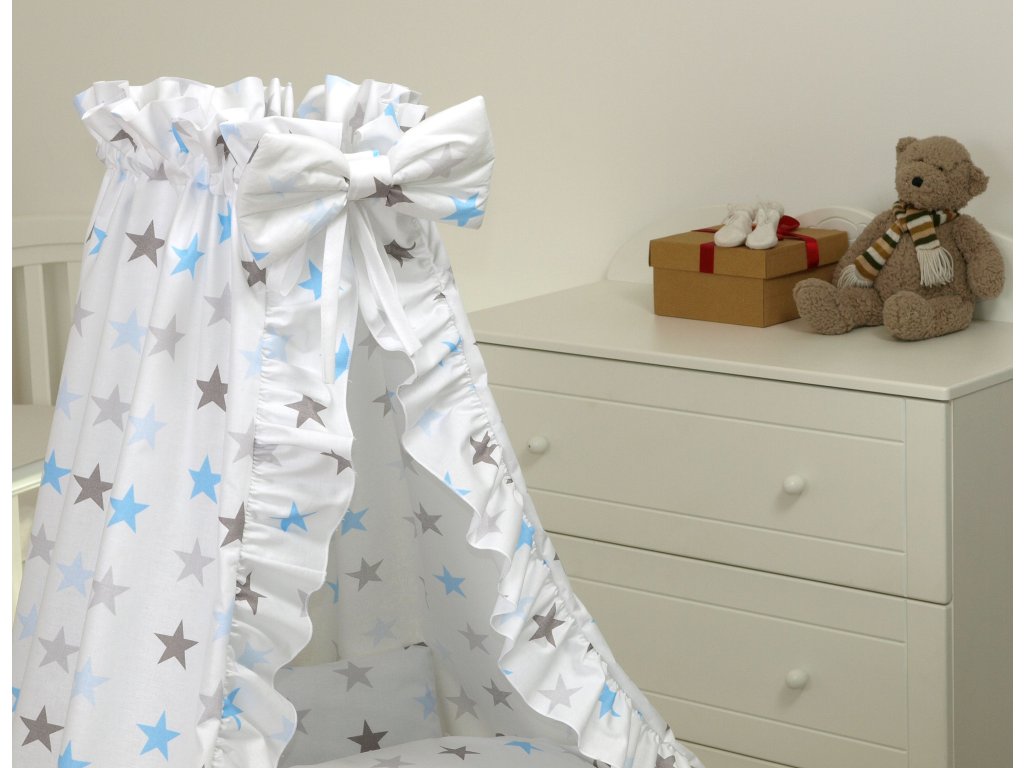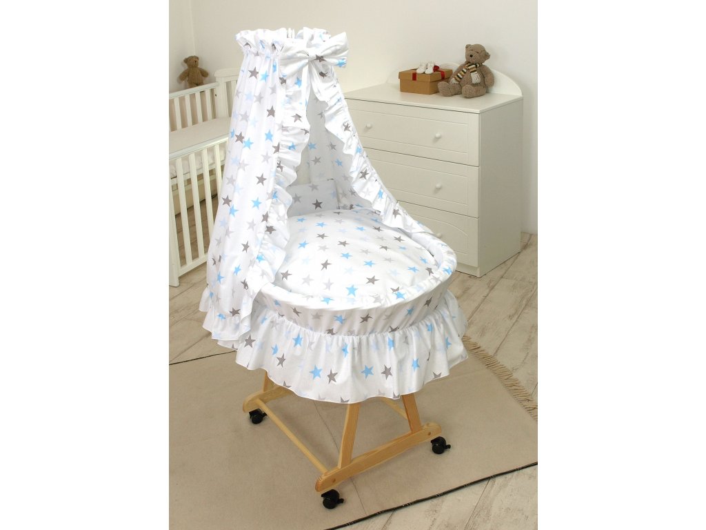 Proutěný košík pro miminko PŘÍRODNÍ - modro šedé hvězdy