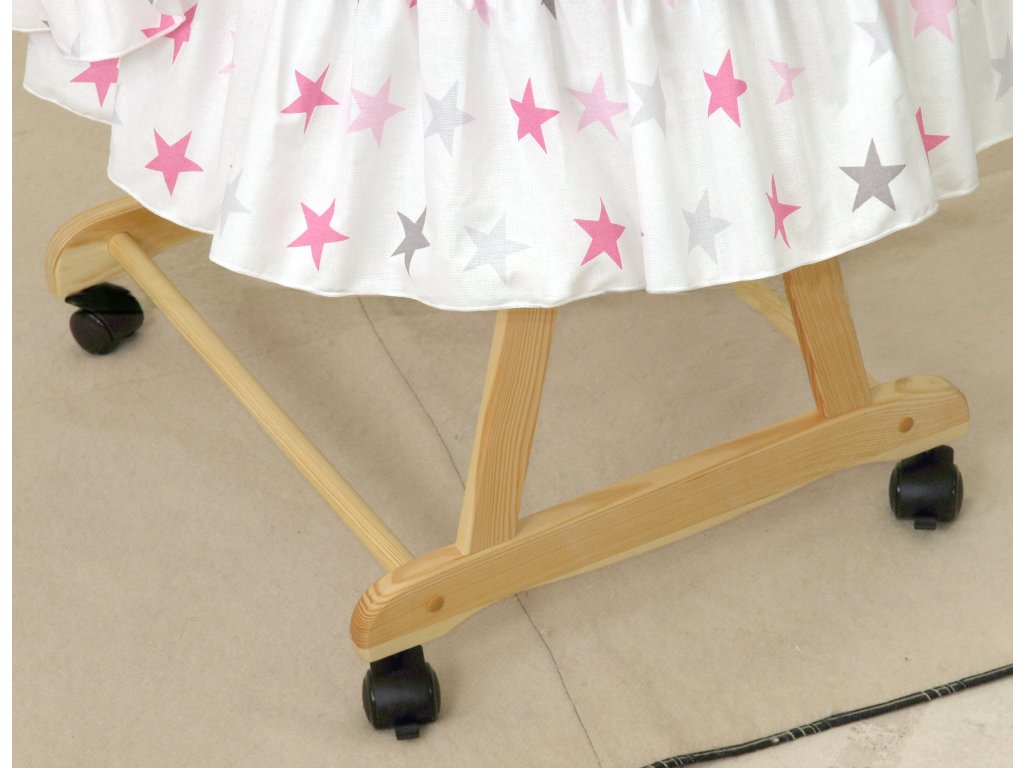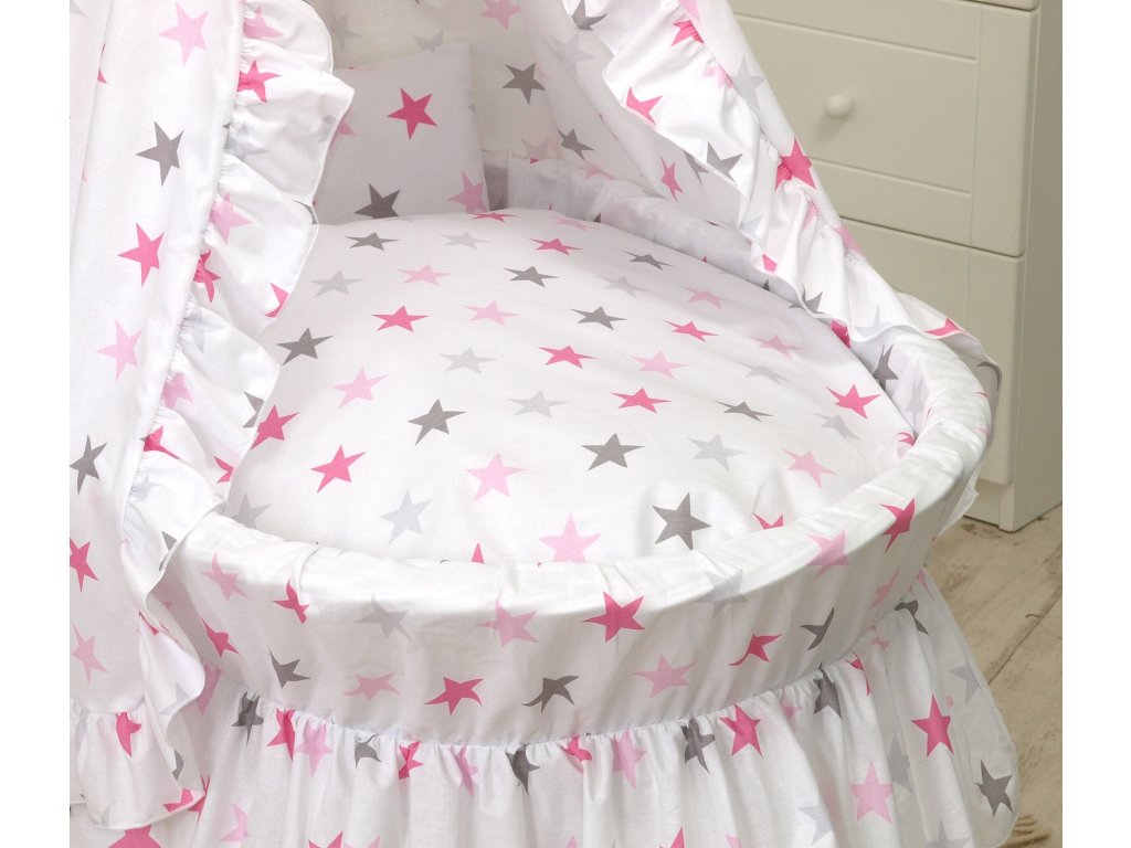 Proutěný košík pro miminko PŘÍRODNÍ - růžovo-šedé hvězdy