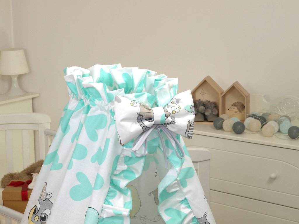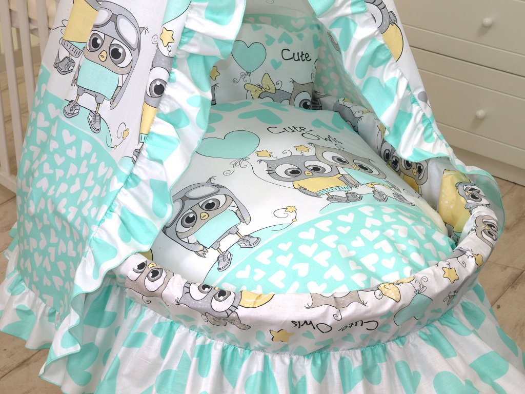 Proutěný košík pro miminko PŘÍRODNÍ sovičky mint