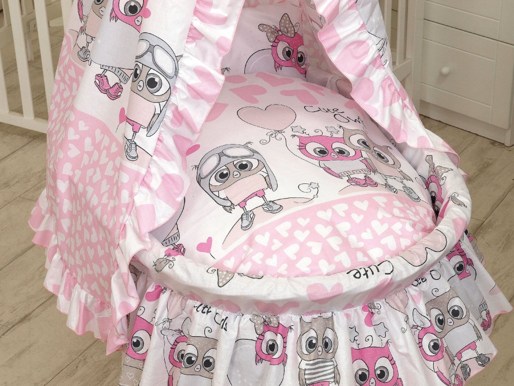 Proutěný košík pro miminko PŘÍRODNÍ sovičky růžové