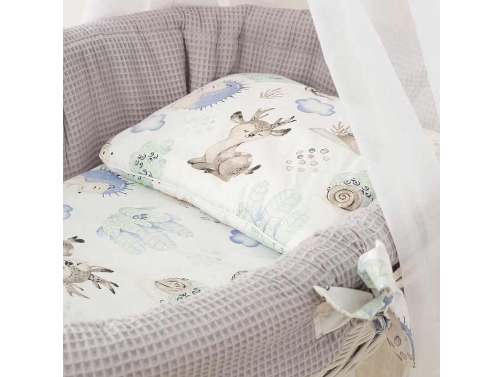 Proutěná postýlka bílá - ŠEDÁ vafle/bavlna