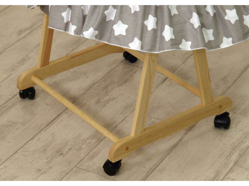 Proutěná postýlka PŘÍRODNÍ - bílé hvězdy velké na šedé