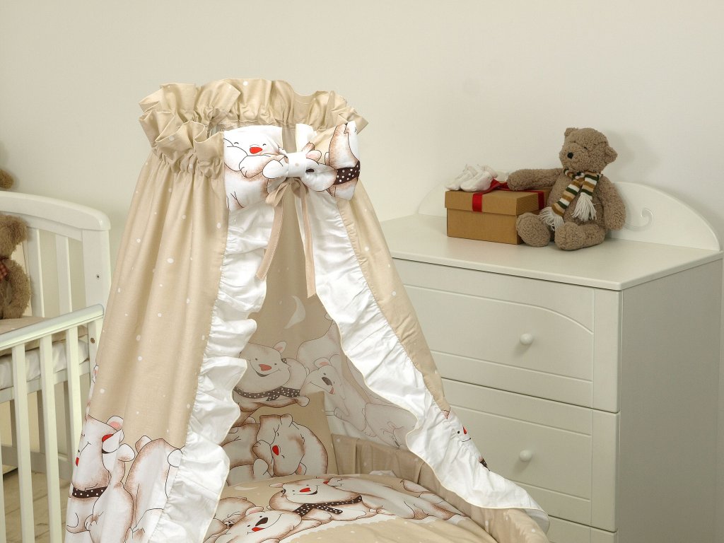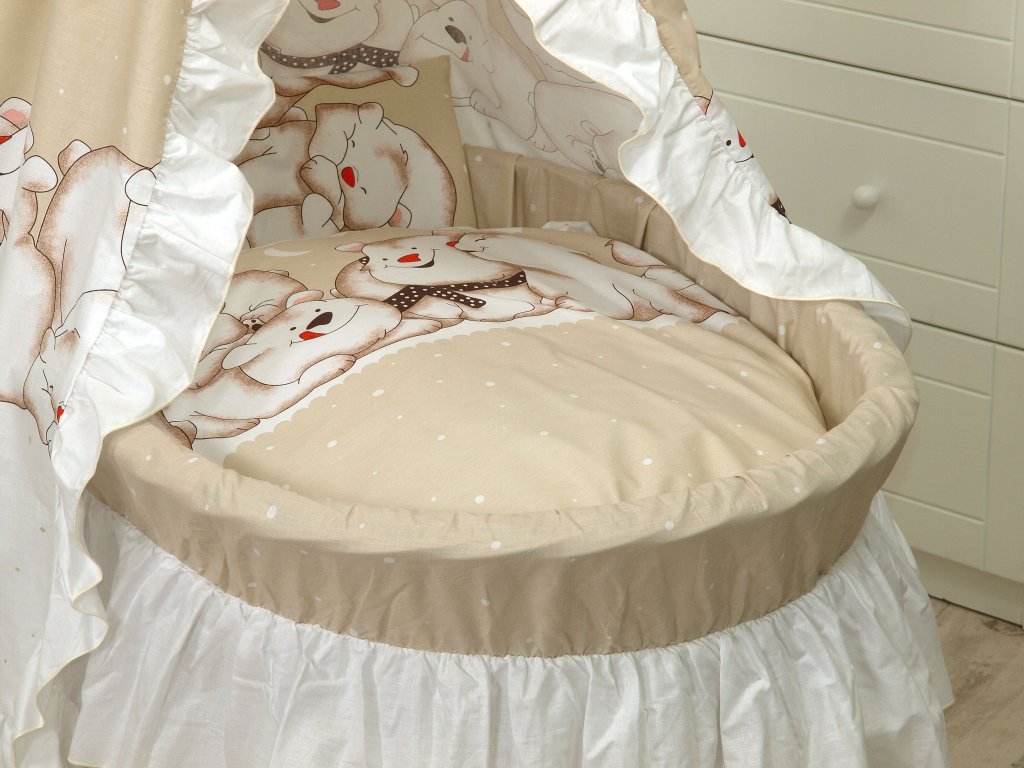 Proutěná postýlka PŘÍRODNÍ - medvědi béžoví