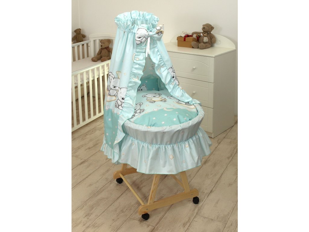 Proutěná postýlka PŘÍRODNÍ - medvídek mint
