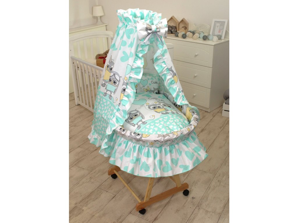 Proutěná postýlka PŘÍRODNÍ - sovičky mint
