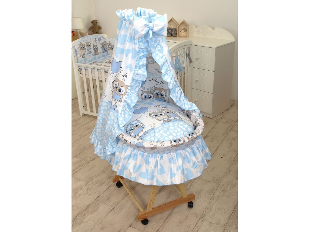 Proutěná postýlka PŘÍRODNÍ - sovičky modré